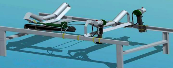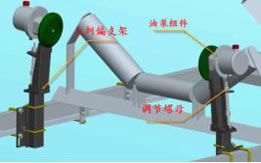 液壓糾偏裝置作用在上、下調(diào)心托輥上,皮帶跑偏時(shí)主動(dòng)調(diào)整糾偏拖輥角度校正皮帶,不但可省掉立輥保護(hù)皮帶邊緣不受立輥摩擦損傷,而且快速校正皮帶。 自動(dòng)檢測(cè)跑偏并予以校正,使皮帶始終處于合理狀態(tài)運(yùn)行,對(duì)皮帶機(jī)安裝不當(dāng)、運(yùn)轉(zhuǎn)失靈、物料沖擊、負(fù)荷變化、皮帶斷面間伸長(zhǎng)率不均勻造成皮帶跑偏有很好的調(diào)整作用。