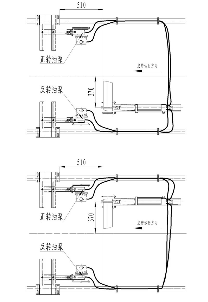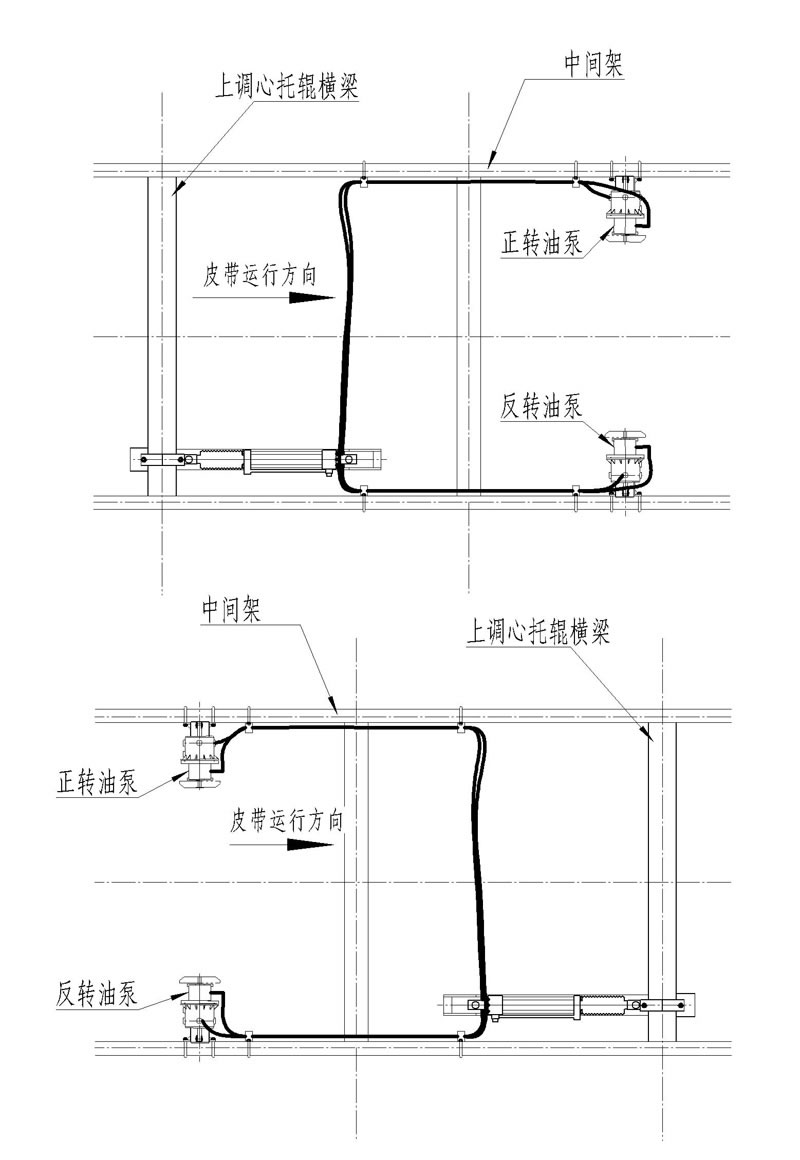全部安裝完成后,模擬皮帶跑偏,輪流盤(pán)動(dòng)左右檢驅(qū)輪,讓油缸帶動(dòng)調(diào)心托輥旋轉(zhuǎn),循環(huán)5次。