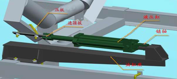 油缸通過(guò)油缸座固定在上調(diào)心托輥的下橫梁上,下橫梁一般都是槽鋼。安裝過(guò)程可分為如下步驟: