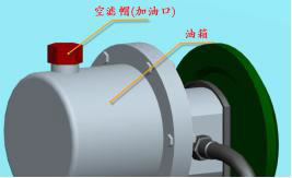 8.加油: 所有部件安裝完畢后就開(kāi)始給系統(tǒng)加油,加油時(shí)擰下空濾帽,空濾帽位置如圖所示,通過(guò)油位計(jì)觀察其油位,加油至油箱的4/5處即可;